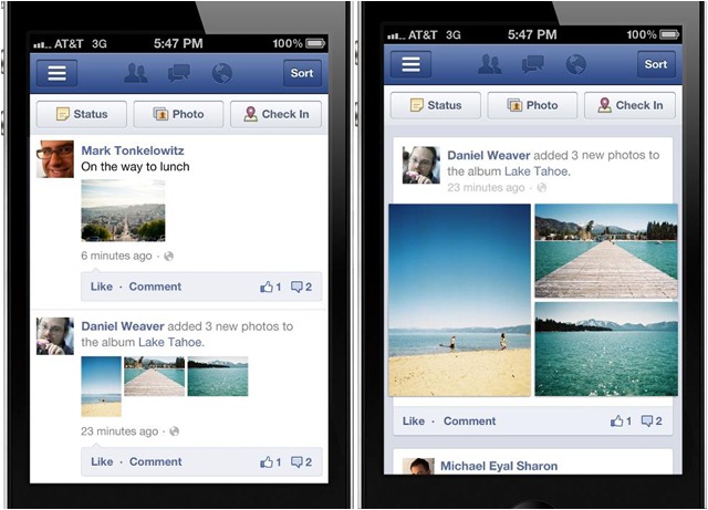 คอนเทนต์หรือเรื่องราวที่เกิดขึ้นบนหน้า News Feed แบบใหม่จะดูมีมิติและรู้สึกน่าสนใจมากขึ้น เช่น การแชร์รูปภาพ, ลิงก์, อัลบั้ม และแผนที่ ทุกอย่างจะดูชัดเจนและน่าสนใจมากขึ้นFacebook News Feed